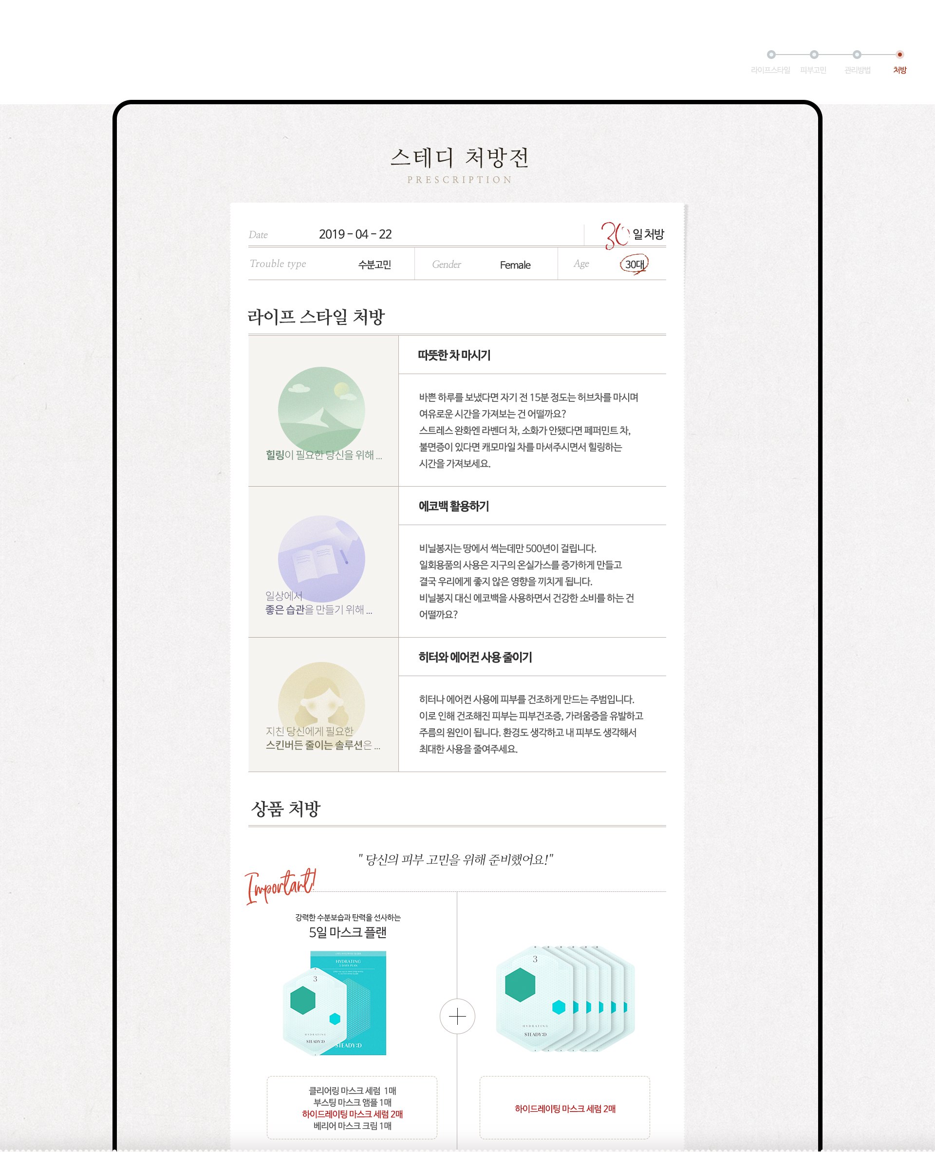 피부 고민에 대한 항목이 많아 오브제를 다양하게 활용하기 어려워